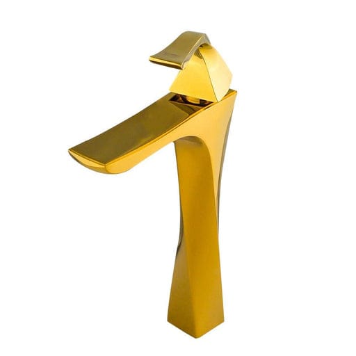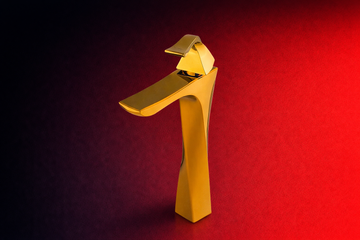 It appears to be a modern luxury bathroom faucet with a polished gold finish. The...